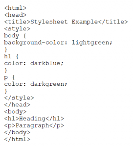 The first way is to use the <style>…</style> tags. They are placed between the <head>…</head> tags. Write the following code in an empty Wordpad: