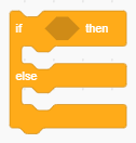 The “if then” block runs the script inside it if the condition is true. The condition is put in the blank that is darker than the color of the original block and we put the code we want to run inside.