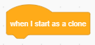 The “when I start as clone” block tells a clone what to do once it’s created.