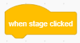 The “when stage clicked” block runs the code attached to it when the stage is clicked. You can see this block only when the background is selected.