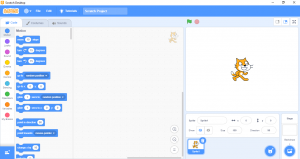 Motion, Looks, Sound, Events, Control, Sensing, Operators, Variables, My Blocks