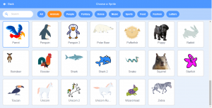 When you click it, a large sprite menu will appear. Choose a flying parrot sprite.