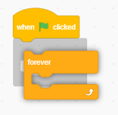 Go to the control blocks, get a “forever” block, and attach it to the “when green flag clicked” block.